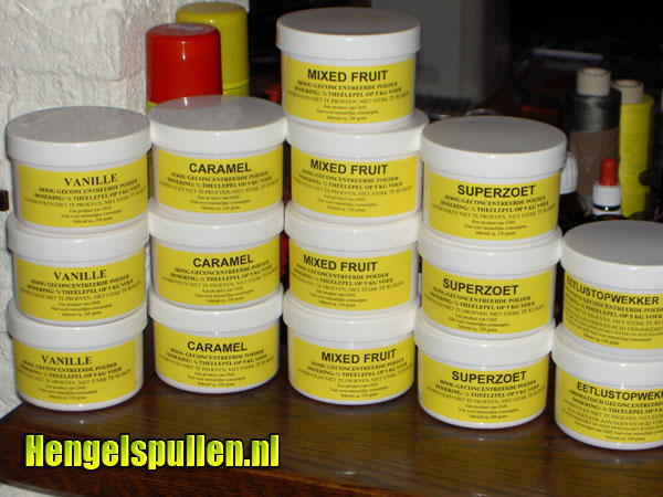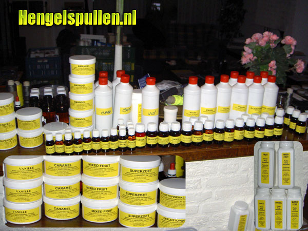 Voordat wij het in de gaten hadden stonden we tussen allerlei dozen met geur' en smaakstoffen. Mijn mond viel open van verbazing. Niet alleen in de garage maar ook in huis stond letterlijk alles vol (woonkamer, keuken, eetbar, bijkeuken en zelfs de trap naar boven). Onze eerste indruk was veelbelovend! Van achter zijn keukentafel (ingericht als bureau) stond Piet Groot, directeur/eigenaar, ons te woord. Half over zijn leesbril kijkend begon hij zijn relaas'' 'Voor buitenstaanders lijkt het dat er niet veel kennis nodig is om in deze branche van de hengelsport actief te zijn. Sommige zeggen wel, het is puur een kwestie van potjes vullen.' Na een diepgaand gesprek blijkt dit een groot understatement! Ook in deze branche steken er steeds weer nieuwe zaken de kop op, waar direct en adequaat op in moet worden gespeeld. Zelf zegt Piet, dat we op een keerpunt staan als het gaat over de geurtjes en de smaken of simpel gezegd, de additieven.