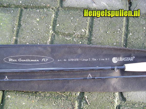 De hengel die ik heb getest van het merk Albastar, is van het type 'Blue Gentleman FLY' en wel de tweedelige uitvoering bij een lengte van 2.70 meter voor aftma klasse 6/7.