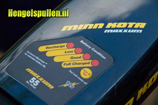 Op de Minn Kota Maxxum zit standaard een accumeter. Wij hebben zelf weinig van deze meter gebruik gemaakt. De reden hiervoor is dat je de motor minimaal 20 minuten niet moet gebruiken om een goede meting te kunnen doen. Daarnaast voel je wel aan reactiesnelheid en kracht van de elctromotor of je accu leeg aan het raken is. Om dit dan bevestigd te krijgen (na 20 minuten niet de motor te hebben gebruikt) is voor ons als mosterd naar de maaltijd. Daarnaast bleek het dat wij met een volgens de Minn Kota lege accu, nog prima een aantal kilometers naar de trailerheling terug konden varen. De accu die wij hebben gebruikt tijdens deze duurtest is een 115aH accu van VMF. Met deze accu en de Maxxum waren wij in staat om een hele dag zonder zorgen met een electromotor te vissen (waarbij wij voor de lange stukken gebruik maakten van een snellere buitenboordmotor).