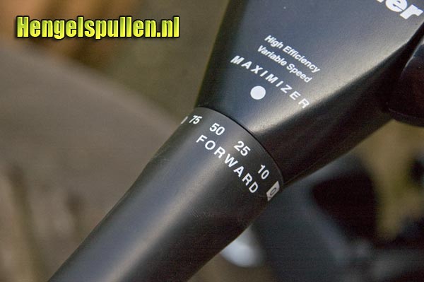 De Minn Kotta Maxxum reageert op de minste beweging van de traploze instelbare variabele snelheidsregelaar. Dit maakt het mogelijk, zoals hierboven reeds vermeld, om op de centimeter nauwkeurig je boot te kunnen manouvreren. Het enige moment waarop de motor je even voor een paar seconden in de steek kan laten, is als je van volgas vooruit in 1 keer omgaat naar volgas achteruit. Het viel ons op dat met een volle krachtige accu dit 'dode' moment beduidend korter was dan met een legere minder krachtige accu. Desondanks mag dit de pret niet drukken. De Minn Kota is een uitstekende motor die zichzelf in de loop der tijd heeft bewezen. Ook met de gevoeligheid van de buitenkant van de motor is niks mis. De stang van de motor is gemaakt van onbreekbaar buigzaam materiaal. In de afgelopen maanden hebben wij redelijk vaak contact gemaakt met stenen en andere obstakels onder water. De stang van de motor heeft al deze klappen netjes opgevangen. Ook de propeller van de motor kan tegen een stootje.