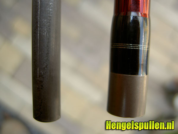 - De hengel is behoudens het topdeel uitgevoerd met oversteeksluitingen.