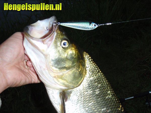 Het komt vaker voor, je ziet roofblei jagen, maar op grote afstand. Te groot. Het is met pluggen en poppers niet af te werpen, zogezegd. Met lange afstandbommetjes zoals de lepels van Kastmaster kom je al een stuk verder. Maar wat als de kieskeurige, ietwat nuffige roofbleien het ijzerwerk die dag niet pruimen? Uitgekakt? Nee! Want, nieuw op de markt, in het roofvisassortiment van Prologic, te vinden onder de noemer Savage Gear, ligt de oplossing. Ho, ho, denk nu niet dat aasje moet natuurlijk gepromoot worden en nu mag Willempie er een wervend stuk over schrijven. Niets van dit alles, ik zag hem hangen bij Rix hengelsport en dacht instinctief, 'dat kon wel es een heel aardig en vangend aasje zijn voor onze vriend roofblei'. Aan de kassa vertelde de hengelsportbaas, 'net nieuw. Hij doet wat zo.' Hij maakte met zijn hand een schommelende beweging, zo je een dronkeman op de fiets uitbeeldt en vertelde dat je hem waarschijnlijk een behoorlijk eind kon wegzetten'