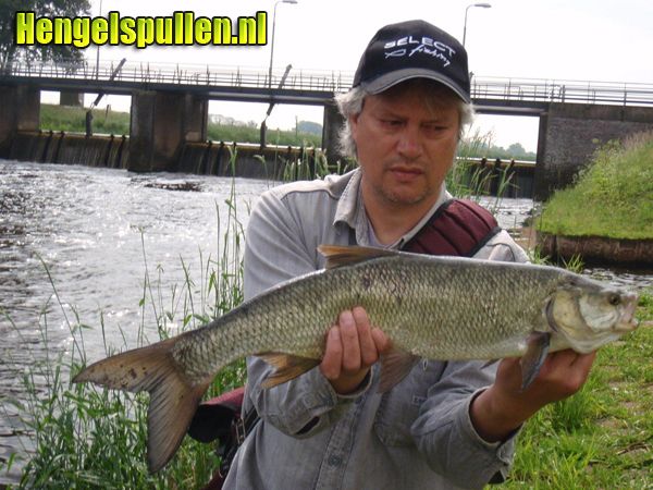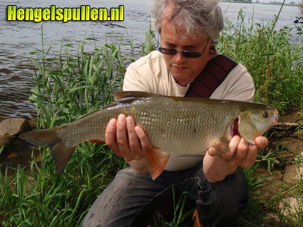 'Goedemorgen, heren.' 'Ook een goedemorgen.' 'Wil het wat?' 'Prima!' 'Ik neem aan dat de papieren in orde zijn?' 'Jazeker!' 'Dan gaan we even controleren.' 'Natuurlijk, alstublieft.' De ene agent checkt, de andere probeert ietwat geforceerd een gesprek aan te knopen. 'Vissen jullie op snoek?' Ja, ja, schijnbaar hebben we hier te maken met een missionaris voor de hengelsport, maar niet heus. 'Nee, roofblei.' De agent blijkt geen notie te hebben van deze prachtige predator. Ik gun hem een blik op mijn camera. Sinds dat moment heeft de diender een idee hoe een roofblei er uitziet. 'Lijkt op een flinke voorn.' Ach ja joh, voor jou wel' De andere agent heeft minder belangstelling en breekt in. 'Jullie weten dat je hier niet mag staan?' 'Hoezo niet?' 'Er staat duidelijk op 75 meter afstand blijven van de stuw, jullie staan op 55, hooguit zestig meter.' 'Ik wil niet bijdehand doen, maar hoe kan ik nu verder naar links?', en wijs naar de afgrond en het weelderige struikgewas naast me, waar geen sterveling uit de voeten kan. 'Ik sta hier al meer dan twintig jaar op deze stek te vissen', zeg ik, zonder woord van overdrijving. 'Ik verzin de regels ook niet', antwoordt de diender, 'ik voer slechts uit.' Tja' 'Kom Willem, we gaan', zegt mijn maat, 'als het zo moet, ik heb de schik er af.' De agenten houden het bij een waarschuwing. Een laatste. Een typisch geval van 'met de schrik vrij'. Maar tevens het eind van een stuk roofbleivermaak. Jammer. Je doet geen vlieg kwaad. Behandelt de vis met respect, 'catch & release', maar zo verdwijnt dus een wereldstek van de lijst. Want je voelt natuurlijk op de klompen aan dat je aan de beurt bent de volgende keer. Stuwen die open staan zijn als een magneet voor allerlei soorten vis. Op warme dagen zorgt het woelige water voor verkoeling en zuurstof. Daarnaast zorgt het tumult onder de waterlijn dat er voedseldeeltjes vrijkomen van de bodem, dan wel mee gevoerd worden door de stroming. Dat trekt wolken kleine visjes, die op hun beurt rovers aantrekken, waaronder, welzeker, onze teerbeminde roofbleien. Het liefst gooi je het hengeltje uit kort bij de kunstmatige waterval, maar dat is bijna smeken om een bekeuring en die zijn niet mals. Negentig euro, goeiemorgen vader, of je een emmer leeggooit. O shit, dit moet een review worden, maar goed, ik moet even mijn frustratie kwijt en dat bovenstaand relaas moge gelden als waarschuwing. Inventief Willem, wie afstand moet houden, moet inventief zijn. De oplossing zat in het overbruggen van een flinke afstand en daar, waarde lezer, daar komt de Fat Pencil Prey van Savage Gear om de hoek kijken'