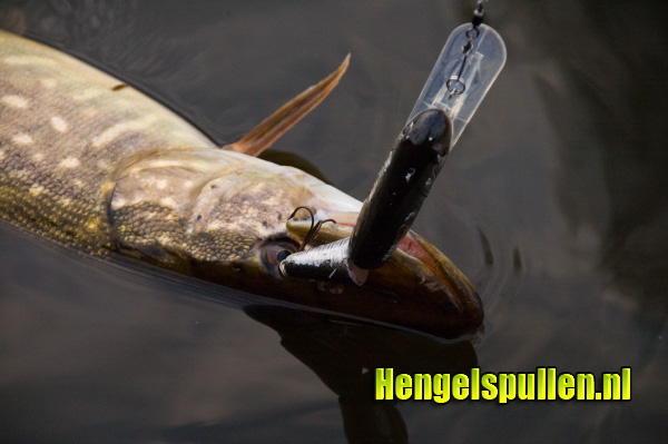 Een snoek meldt zich voor de camera. Ook deze Cormoran Cora-Z Activator tweedelige plug is prima met de Daiwa te vissen.