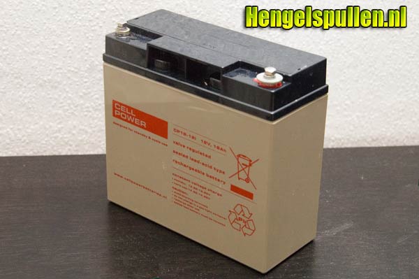 Het is aan te raden een aparte accu bij de LMS-334C-iGPS te hebben. Dit om plotselinge piekspanning, bijvoorbeeld van een electromotor, te voorkomen. De accu op de afbeelding is een 18aH accu. Je kunt de accu opladen met een gepaste lader. Een gewone accu mag je met niet meer dan 25% van de Ah capaciteit laden, wat betekend dat deze accu met maximaal 6 Ampere geladen mag worden.