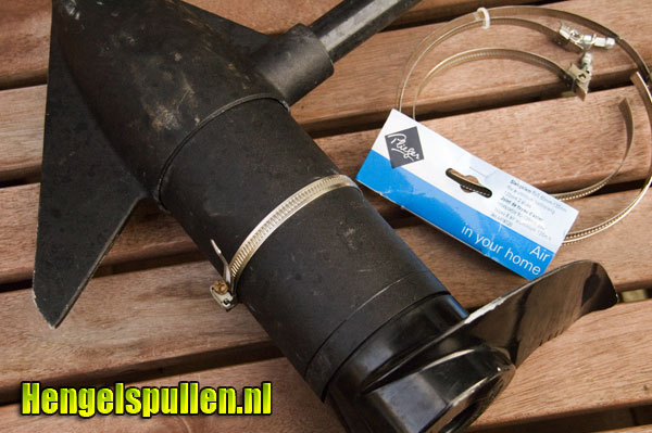 Met een slangklem die je bij de Gamma kan kopen, kun je op een goedkope manier de tranducer op een electromotor monteren.