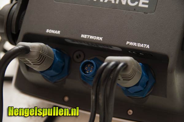 Op de Lowrance zitten 3 uitgangen. 1 voor de transducer, 1 voor optionele NMEA2000 communicatie en 1 power uitgang. Dit is de power uitgang waarbij 2 van de 3 dikke draden worden gebruikt om op de accu aan te sluiten. De 2 zwarte draden gaan naar de min, de 2 rode draden gaan naar de plus (met een zekering ertussen).
