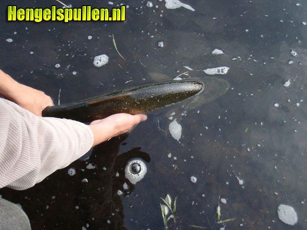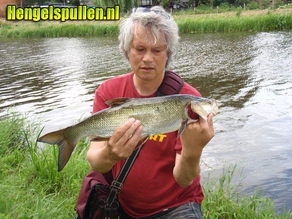 Ja, ik weet het. Zo'n goudkopje is natuurlijk bedoeld voor vliegvissers, maar wat als je niet wilt of kunt waden en de kant loopt steil op, of is voorzien van weelderige oevervegetatie? Dan biedt een lichte spinhengel uitkomst. Het werkt heel simpel, ingooien en terugvissen, hooguit wat sneller dan je tijdens het baarsvissen zou doen. O, o, o, wat was ik benieuwd. Zou mijn experiment als half-om-half vliegvisser slagen. Eerste worp, niets. Tweede, baars. Kijk, dat schept vertrouwen. Na het verschalken van een flink aantal dappere baarsjes wist ik dat het werkte, met die restrictie onze stekelriddertjes zich vol overgave overal op storten. Ah, eindelijk roofblei, hieperdepiep, het werkt! O nee, winde. Ook leuk. Even later een gil richting vismaat. 'Hebbes!' Het zonkertje was gegrepen door een roofblei. Geen buffel, maar toch! Ik had de impasse doorbroken. Wimpie had het Ei van Columbus ontdekt. Dacht ie'