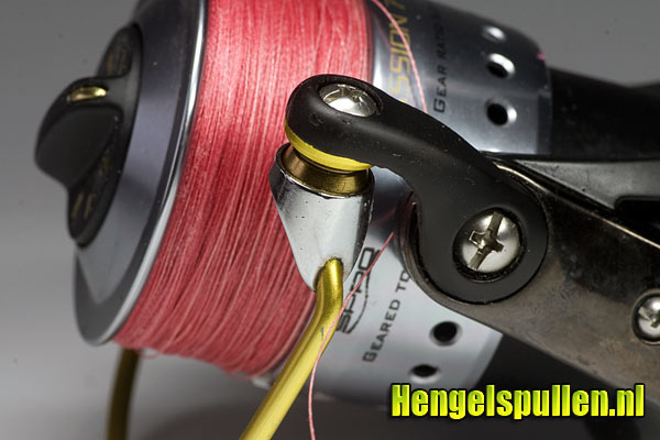 De eerder genoemde holle beugel wordt o.a. toegepast op molens die speciaal zijn ontwikkeld voor de visserij met Dyneema. Wanneer de beugel dichtklapt kan de lijn niet blijven hangen achter de scherpe randjes tussen beugel en het punt waar de lijnrol aan vastzit. Ook bij deze molen is dat het geval en glijdt de lijn na elke inworp weer gladjes op de lijnrol. Ook de lijnrol draait nog steeds en dat zonder enige druppel olie (ook dat heb ik bewust nagelaten)!