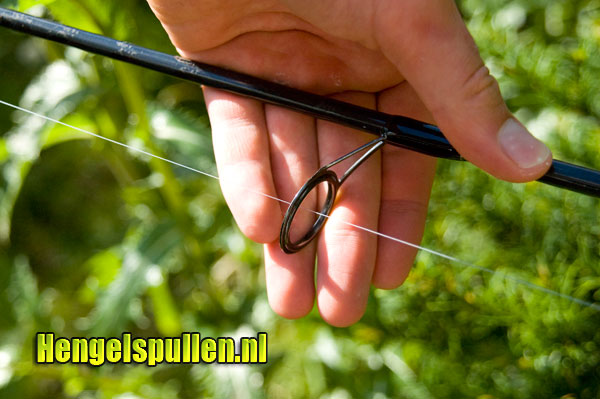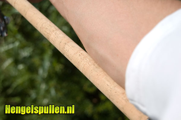 De hengel is vrij dun en ligt daardoor erg lekker in de hand.