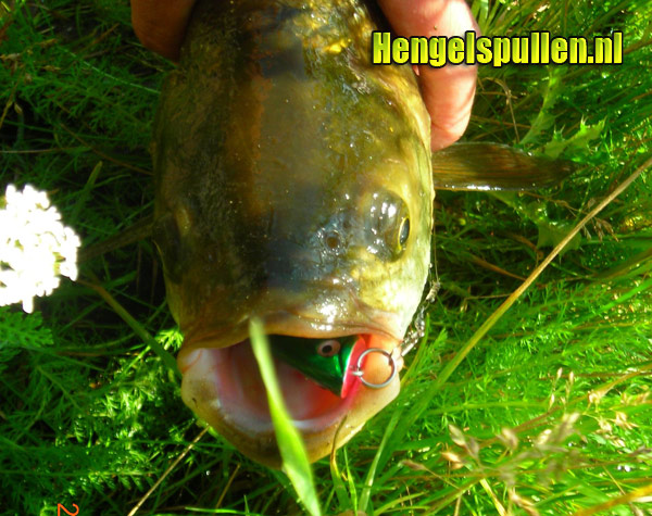 Vorig jaar november visiteerde ik met een vismaatje de hengelsportbeurs in Utrecht. Keurig de paden volgend met de klok mee stuiten we al vroeg op een stand waar Guus Cornelissen (www.guusbaits.com) zijn waar aanbood. Volkmar Strikkers (www.poldersnoeken.nl en www.roofbleivissen.nl) assisteerde hem. Echt iets nodig had ik niet, maar ik kon de lokroep van het kunstaas niet weerstaan. Mijn oog viel op een groen poppertje van het merk Yo-Zuri. Klonk als 'banza', een strijdkreet uit Japan, dus in al mijn onnozelheid dacht ik dat het Japanse stuff was. 'Blondie' Strikkers rook handel. 'Een toppertje hoor', zei ie met lachend gezicht. Guus lachte wat minzaam, zeker nadat ik hem gecomplimenteerd had met zijn Rebel, tenminste, hij was nu van mij, ik had hem gekocht, maar het is zijn creatie. 'Ik neem 'm', zei ik en vroeg m'n maat of hij er ook een wilde. Conservatisme hield 'm tegen. 'Nooit van gehoord dat merk!' Van de drie variaties gold, trout en perch koos ik de laatste en in gedachten zag ik zware roofbleien headbangen aan de Crystal ZZ popper. Eenmaal thuis kwam de twijfel, perch, groen gestreept, roofblei, beetje impulsief Willempie, je had beter iets blauwachtigs kunnen kopen. Even google-en, h' Yo-Zuri, Amerikaans man, niks Japan. Ach, maakt 't uit, leuk ding en wat kost ie nou helemaal, nog geen zeven euro. De winter stond voor de deur en de Yo-Zuri verdween met het andere kleine zomerspul in de kast en bleef vele lange maanden werkeloos.