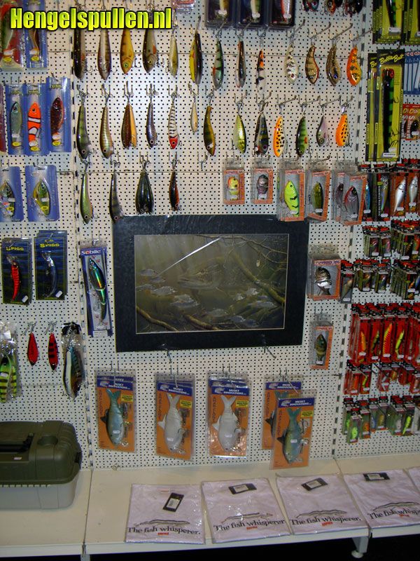 Een wand met Predator artikelen, voor de roofvissers onder ons.